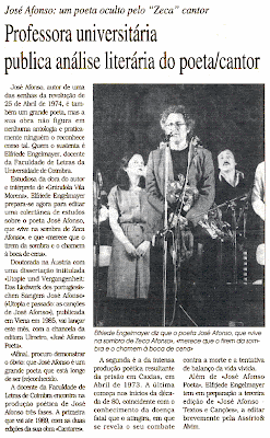 José Afonso no Diário de Coimbra de 7-6-1999, a propósito da publicação duma série de estudos sobre a sua obra poética, por Elfriede Engelmayer, da Faculdade de Letras da Universidade de Coimbra. Espólio de José Mesquita.